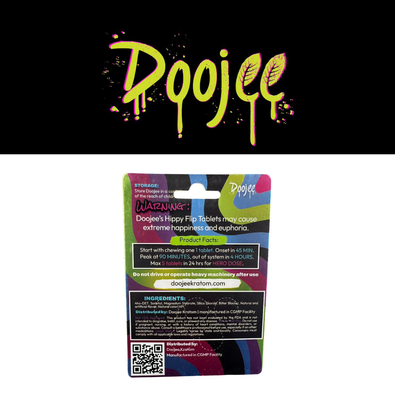 Each 5-count pack contains carefully dosed tablets crafted for consistency, quality, and a truly blissful experience. Manufactured in the USA using premium ingredients, Doojee Hippy Flip Tablets are your go-to option for clean, joyful clarity.